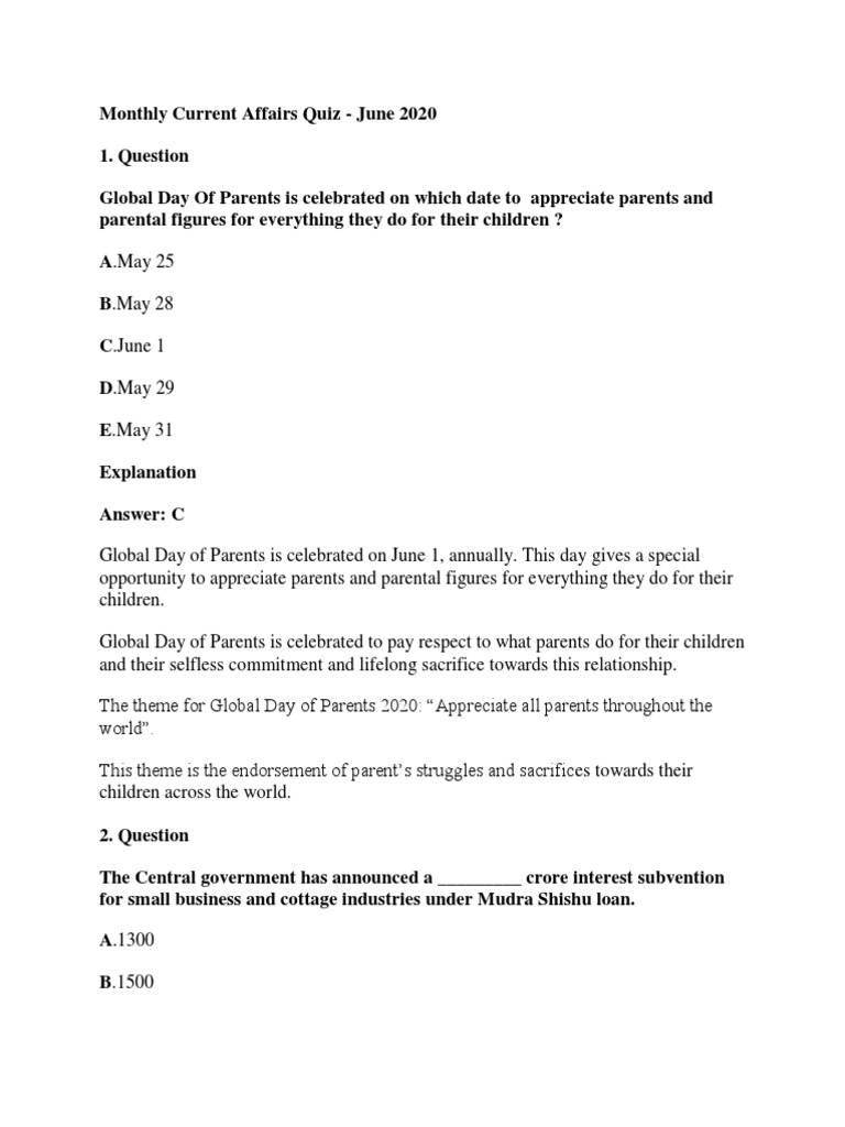 Monthly Current Affairs Quiz June Pdf Moody S Investors Service United Nations Security Council